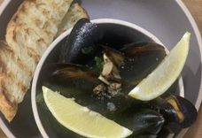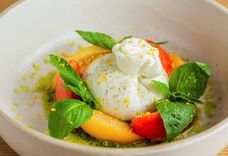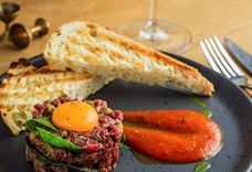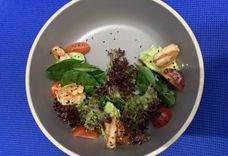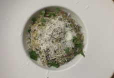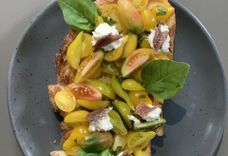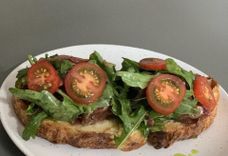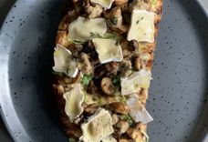 Брускетта с грибами, трюфельным соусом, бри и жареным айсбергом